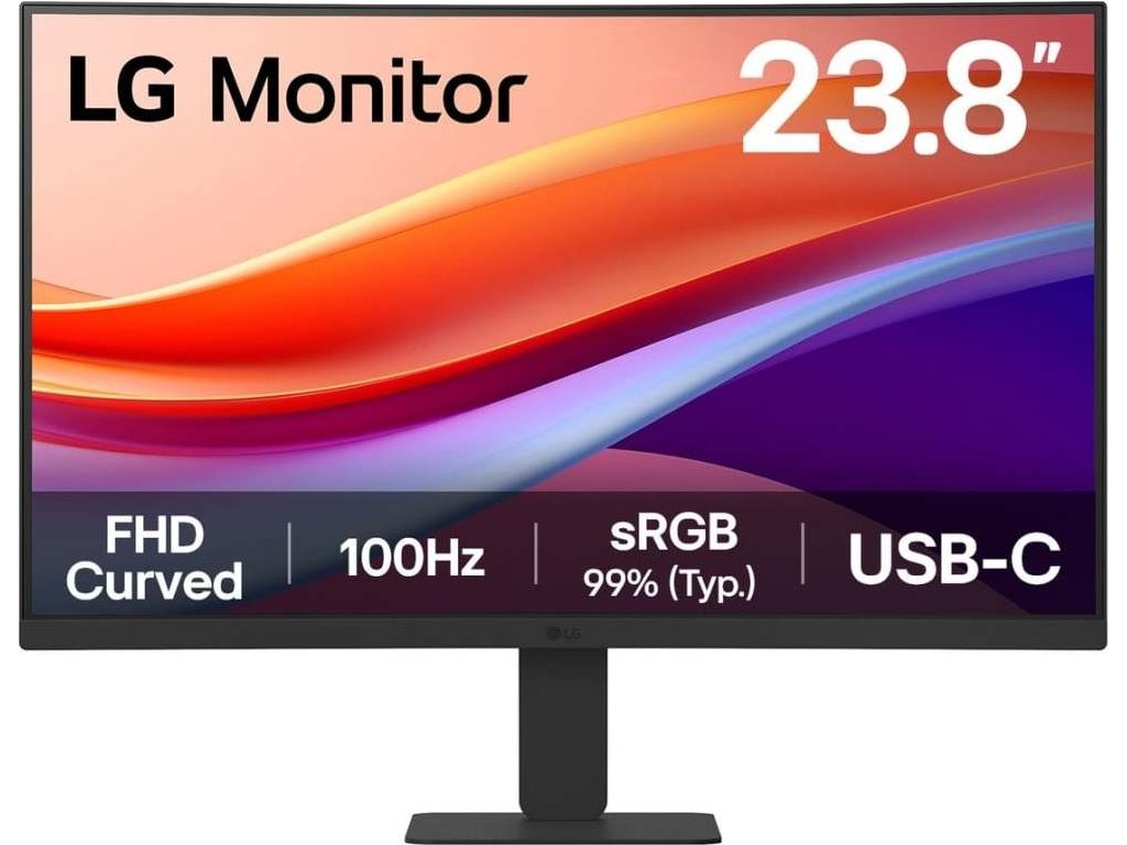 LG 24U421A-BProhnutý LED monitor s úhlopříčkou 23,8" nabízí Full HD rozlišení 1920 × 1080 obrazových bodů a podporu HDR 10. Disponuje dobou odezvy 5 ms, kontrastním poměrem 3000 : 1 a jasem 250 cd/m2. Použitím technologie VA je dosaženo širokých pozorovacích úhlů 178° horizontálně i vertikálně. K dispozici je port USB-C, který kromě vysokorychlostního přenosu videa a dat umožňuje napájení připojených zařízení do 15 W.