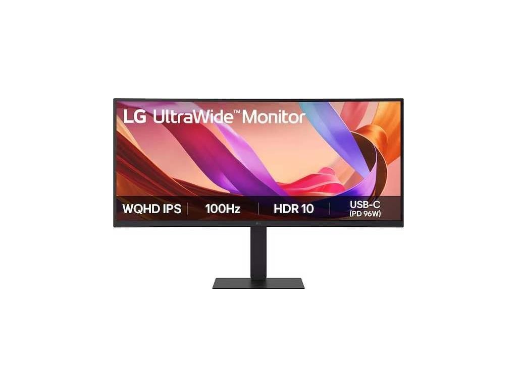 Model: LG UltraWide (34" WQHD IPS)34" IPS UltraWide QHD (3440x1440) monitor se zakřivením 3800R a frekvencí 100 Hz. Má USB-C s 96W PD, 5ms odezvu a HDR 10 s 99% sRGB. Vhodný pro multitasking i pohlcující herní zážitek (reproduktory 2x 7W DepthSound).