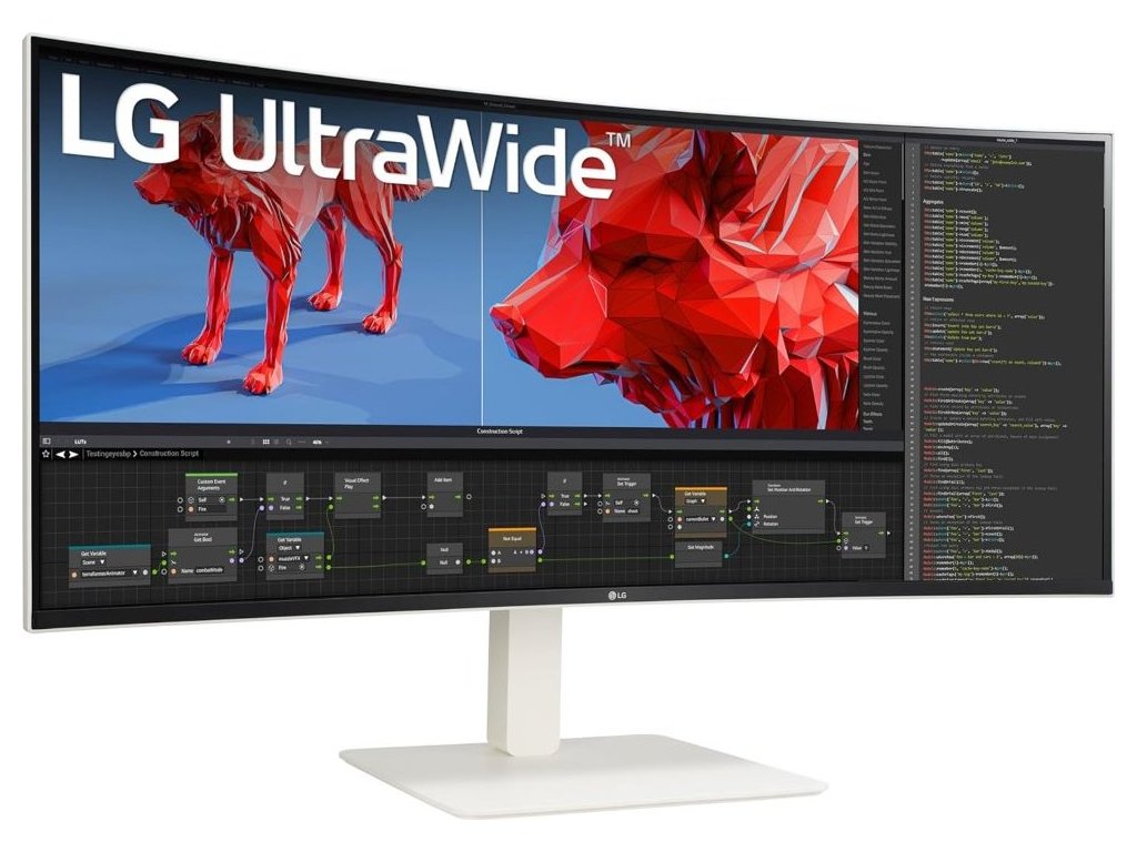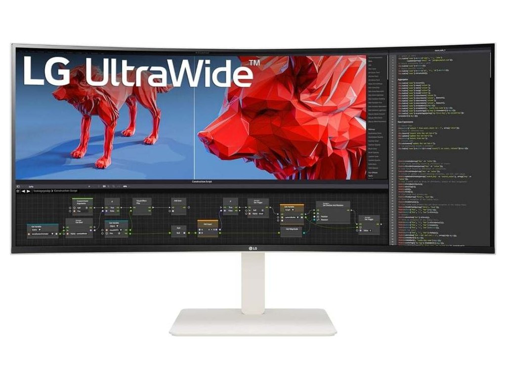LG UltraWide 38WR85QC-WProhnutý LED monitor s úhlopříčkou 37,5" nabízí 4K Ultra HD rozlišení 3840 × 1600 obrazových bodů s poměrem stran 21 : 9. Disponuje dobou odezvy 1 ms, kontrastním poměrem 1000 : 1, jasem 450 cd/m2 a obnovovací frekvencí až 144 Hz. Použitím technologie IPS je dosaženo širokých pozorovacích úhlů 178° horizontálně i vertikálně. Díky podpoře technologie Adaptive-Sync poskytuje monitor plynulý a ostrý obraz. Mezi hlavní přednosti patří certifikace VESA DisplayHDR 600 a 98 % pokrytí barevného gamutu DCI-P3. K dispozici jsou čtyři porty USB 3.0, ethernetový port RJ-45 a jeden port USB-C, který kromě vysokorychlostního přenosu videa a dat umožňuje napájení připojených zařízení až do 90 W. O ozvučení se stará dvojice reproduktorů s celkovým výkonem 14 W. Integrovaný KVM přepínač umožňuje ovládat dvě zařízení připojená k monitoru prostřednictvím jediné klávesnice a myši. Stačí mezi nimi přepnout praktickým tlačítkem. Potěší také výškově nastavitelný stojan.