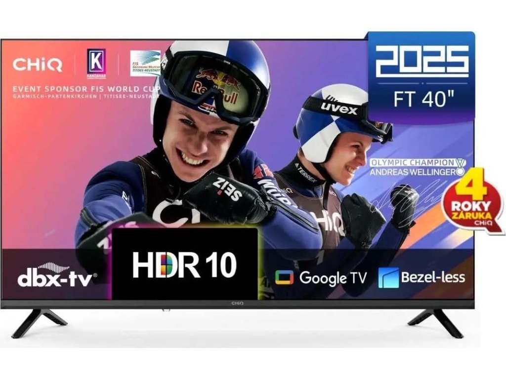 CHiQ 40“ L40FT, ultratenká, bezrámečková Smart Google TV s HDR10, HLG, obrazovkou s Full HD s rozlišením 1920 x 1080 pixelů, Dolby Audio a vylepšeným zvukem dbx-tv.