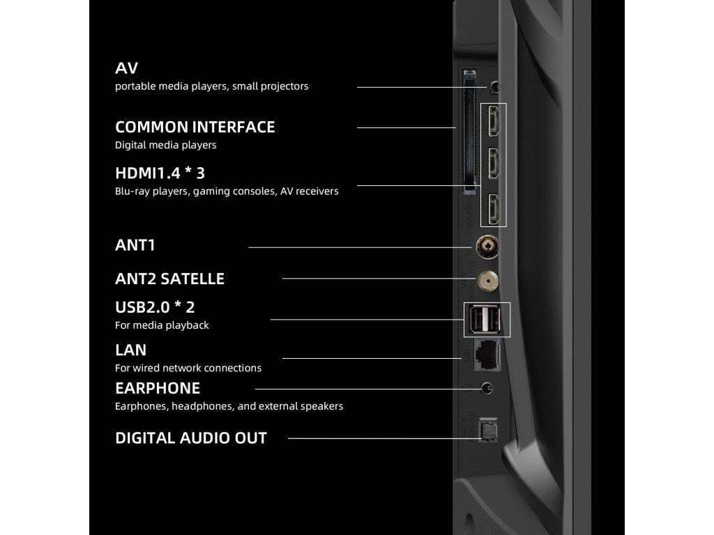 CHiQ 43“ L43QST, ultratenká bezrámečková QLED Smart Android 14 TV s HDR10, HLG, obrazovkou s Full HD s rozlišením 1920 x 1080 pixelů, prostorovým zvukem Dolby Audio a dbx-tv.