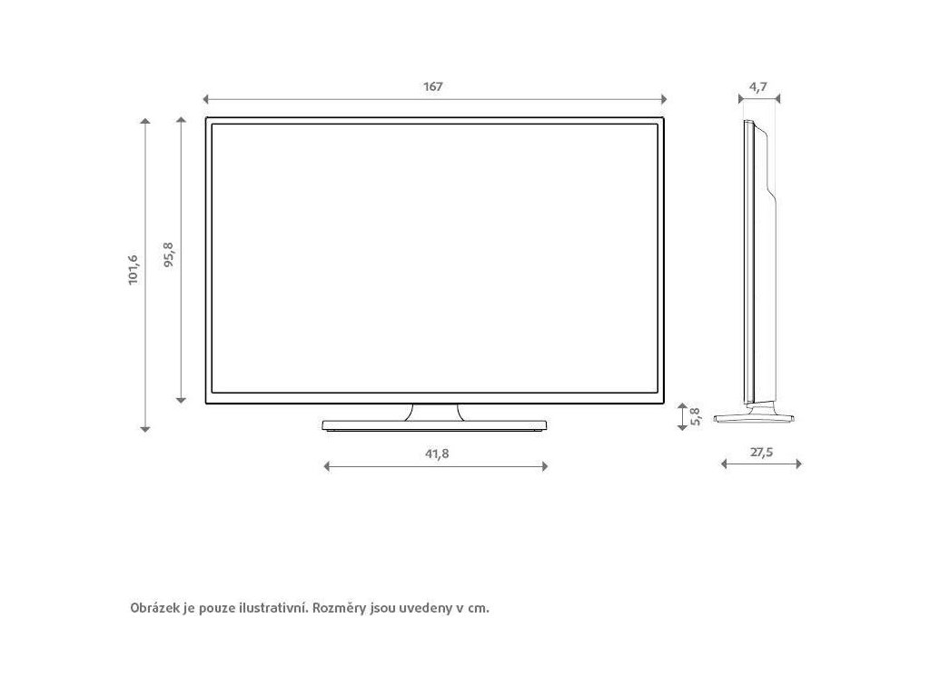 Rozměry bez podstavce (VxŠxH) 95,82 x 167,02 x 4,67 cm