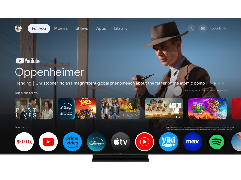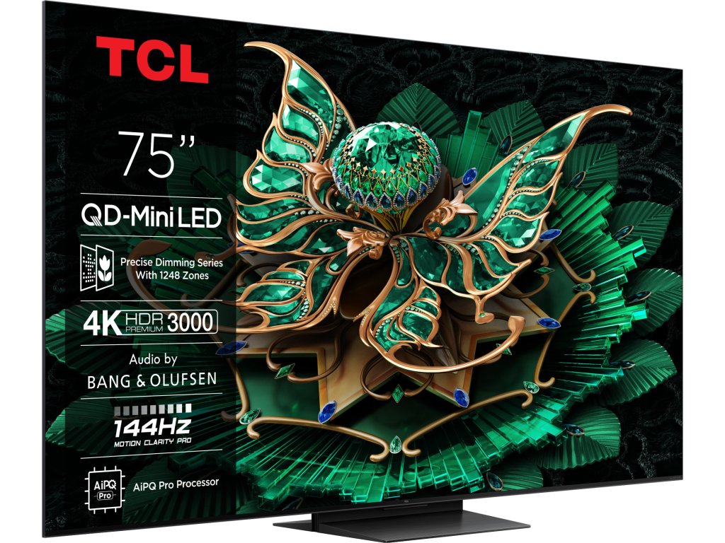 Televize – Google TV, Mini LED, 191cm, 4K Ultra HD, 100/120 Hz (144 Hz – herní režim), HDR10+, Dolby Vision, lokální stmívání, antireflexní obraz, DVB-T2/S2/C, 4× HDMI, 1× USB, LAN, WiFi, Bluetooth, DLNA, Chromecast, Miracast, HbbTV 2.0.3, herní režim, hlasové ovládaní, Google Assistant, Apple Airplay 2, párování s mobilním zařízením, Oneplay, VESA 300×300, repro 60 W, DTS:X, Dolby Atmos, Prostorový zvuk, vestavěný subwoofer, energetická třída FQLED