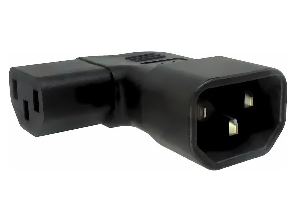 Adaptér úhlový na stranu IEC C13 female na IEC C14 male, napětí 230V, max.proud 10A- První konektor: IEC C13 zásuvka