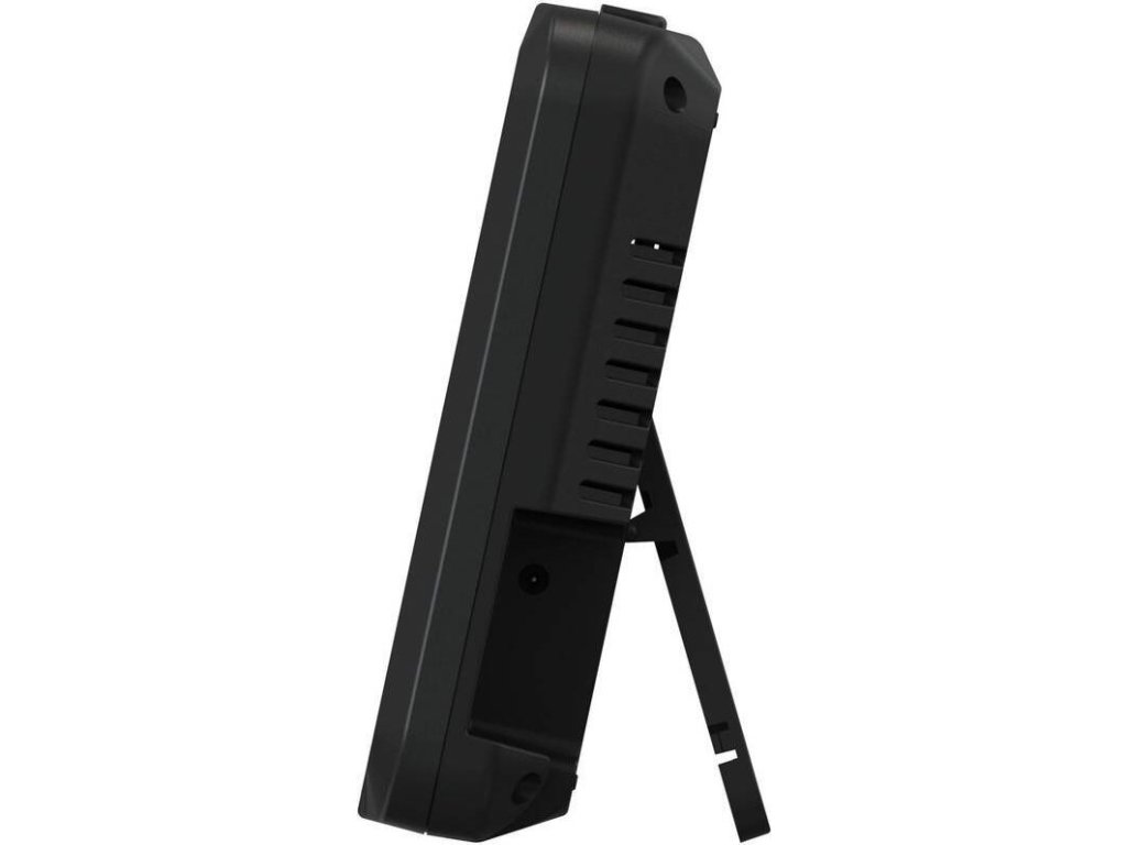Displej vnitřní jednotky je dobře čitelný i v šeru. Pokud budete k napájení používat adaptér, který je součástí balení, podsvícení může být stále zapnuté a můžete si nastavit jeden ze 3 stupňů jasu. Při napájení pouze bateriemi bude displej většinu času zhasnutý, údaje si budete moci krátkodobě zobrazit na několik vteřin po stisku tlačítka. Vnitřní jednotku můžete postavit na podložku pomocí výklopného stojánku nebo zavěsit na stěnu.