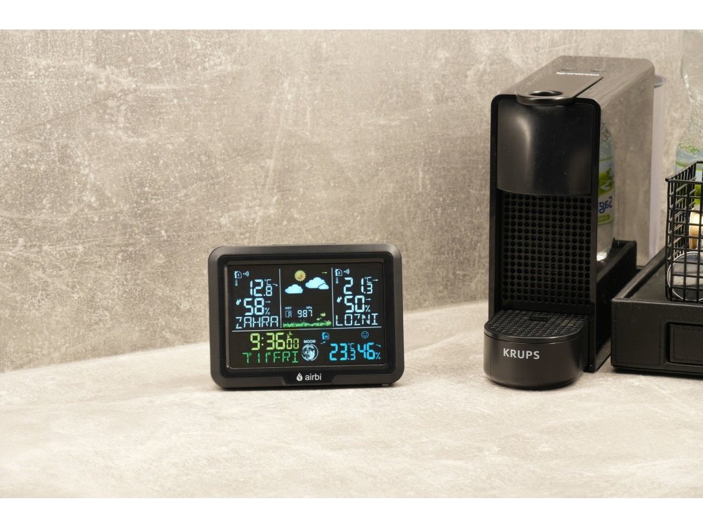 Airbi DUO Color je domácí meteostanice, se kterou budete mít okamžitě přehled o teplotě a vlhkosti až na 3 místech. Vnitřní jednotka má zabudované senzory pro měření teploty a vlhkosti v interiéru. K měření těchto hodnot venku nebo v dalších místnostech slouží 2 bezdrátová čidla, která jsou již součástí balení (max. dosah 100 m v otevřeném prostoru).Každé vnější čidlo má vyhrazené vlastní segment na barevném displeji. Unikátní funkce je označení čidel nápisem na displeji, který se nachází hned pod údajem o vlhkosti. Díky tomu budete vždy vědět, ke kterému čidlu a ke kterému měřicímu místu patří naměřené hodnoty. Můžete si vybrat z přednastavených označení v jednom ze 7 evropských jazyků (EN, DE, CZ, SK, PL, HU, NL). Na výběr jsou zkratky různých měřicích míst, např. koupelny, dětského pokoje nebo zahrady. Pokud by vám to nestačilo, můžete si snadno napsat svoje vlastní označení čidla.