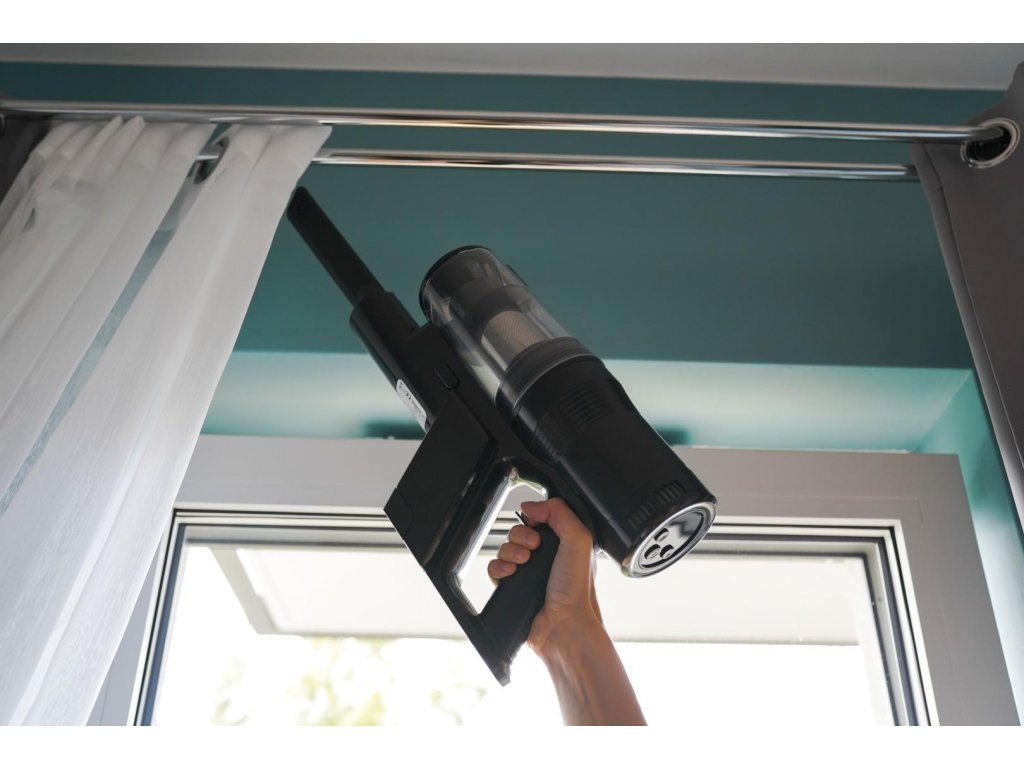 Trubice vysavače se ohýbá na polovinu, což usnadňuje dosažení těžko přístupných míst. Funkce je dostupná po stisknutí tlačítka na trubici.