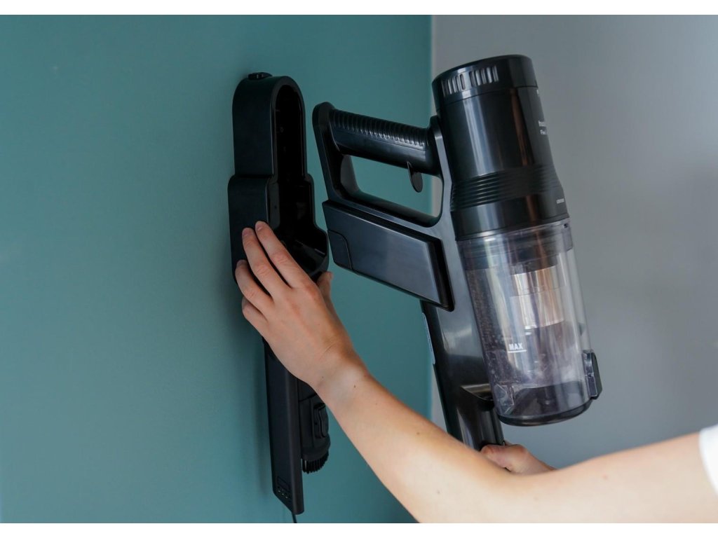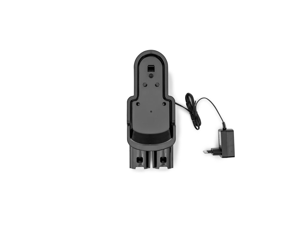 Nabíjecí základna udržuje vysavač vždy připravený k použití a nabízí pohodlné a rychlé nabíjení. Díky kompaktnímu designu dokonale zapadne do každého interiéru.
