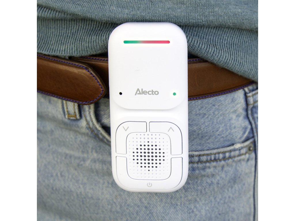 S Alecto DBX130 si můžete užít den, aniž byste museli neustále zůstávat ve stejné místnosti jako vaše dítě. Díky dlouhému dosahu až 50 metrů v interiéru a 300 metrů venku zůstanete stále ve spojení. Pro zjednodušení používání je dobíjecí rodičovská jednotka vybavena praktickým klipem na opasek, který vám umožní bez námahy nosit zařízení s sebou. Dlouhá pohotovostní doba až 16 hodin, umožněná energeticky úsporným režimem Full Eco, zajišťuje, že můžete dětskou chůvičku používat bez obav po celý den, aniž byste se museli starat o dobíjení. Můžete být rovněž bez starostí, pokud budete mimo dosah, nebo je baterie téměř vybitá. DBX130 nabízí maximální flexibilitu a spolehlivost a i v těchto případech vás ihned upozorní.