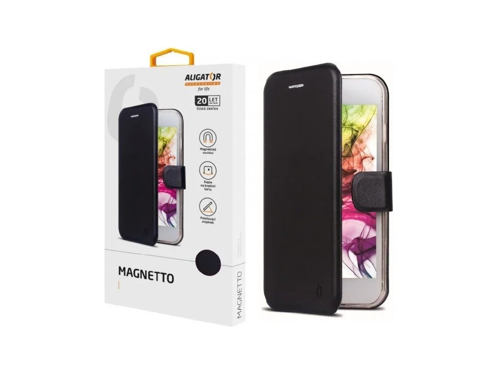 Nová řada dedikovaných pouzder značky ALIGATOR.Dokonale propracovaný design, ultratenké provedení, přihrádka na kartu nebo vizitky, zavírání pomocí magnetické přezky, snadné uchycení mobilního telefonu pomocí silikonové vaničky, stojánek… To je ALIGATOR MAGNETTO.