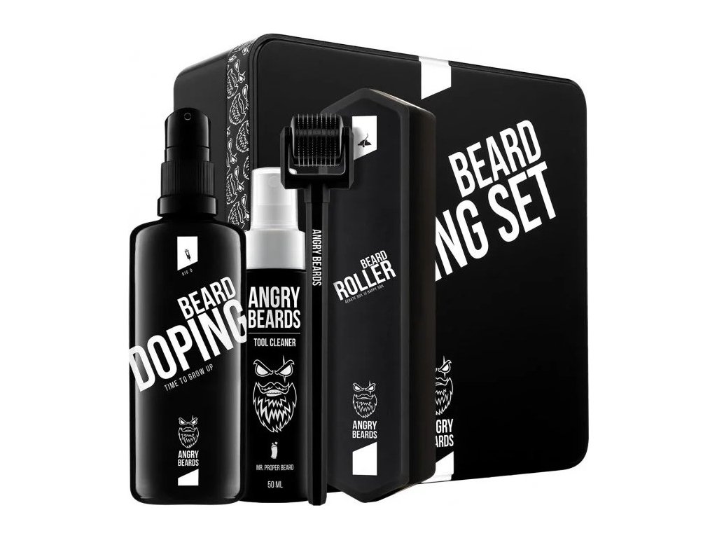 Angry Beards Sada pro růst vousů - Roller & Doping