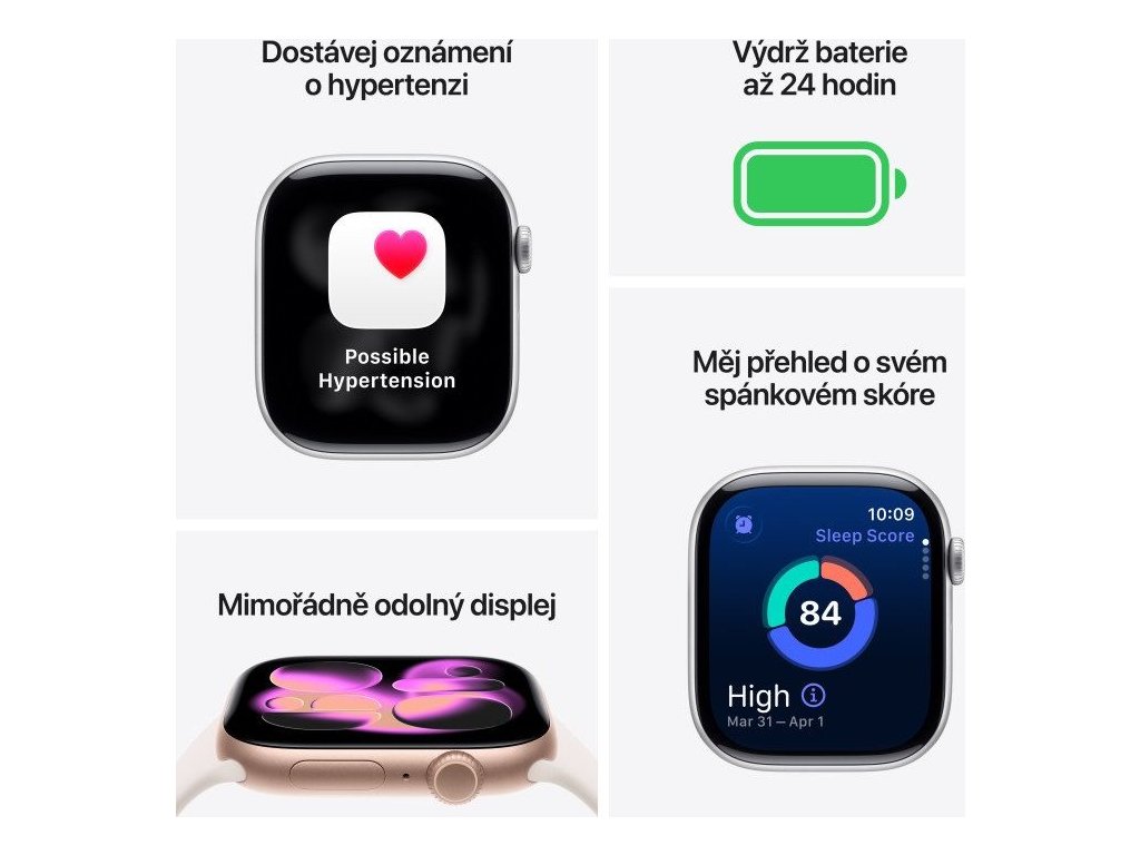 | Zdravotní funkce: | Měření tepu, Monitoring spánku, Měření saturace kyslíku v krvi, EKG, Sledování menstruačního cyklu, Měření úrovně stresu, Upozornění na srdeční problémy |