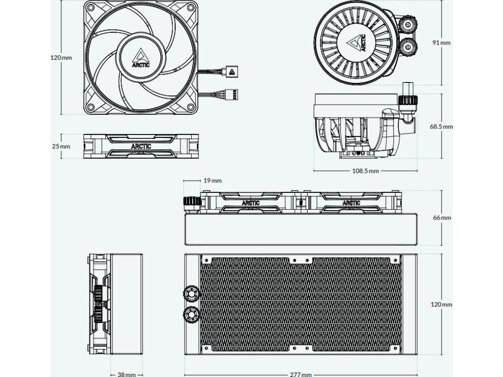 Vodní chladič určený pro chlazení procesoru. Vyznačuje se vysokou kvalitou, výkonem a spolehlivostí. Vybaven je dvěma 120mm ventilátory ARCTIC P12 Pro A-RGB, které disponují kvalitními FDB ložisky zajišťujícími dlouhotrvající bezproblémový chod. Odolné opletené hadice jsou dlouhé 450 mm a díky dostatečně širokému průměru zaručují plynulý průtok chladicí kapaliny.