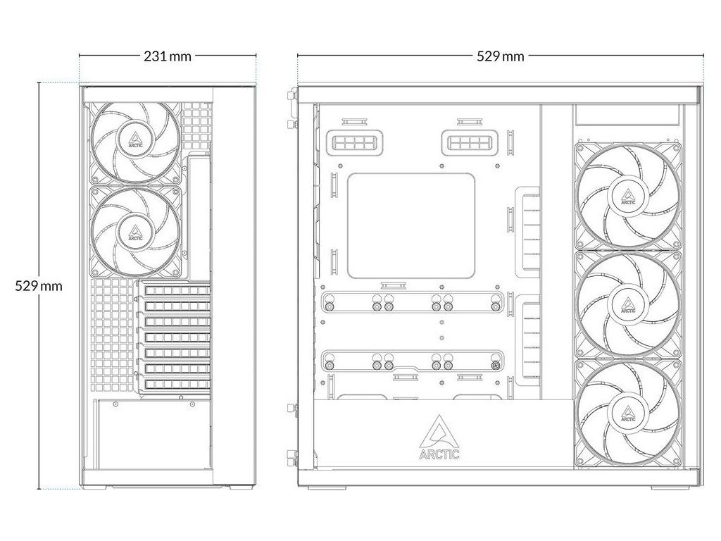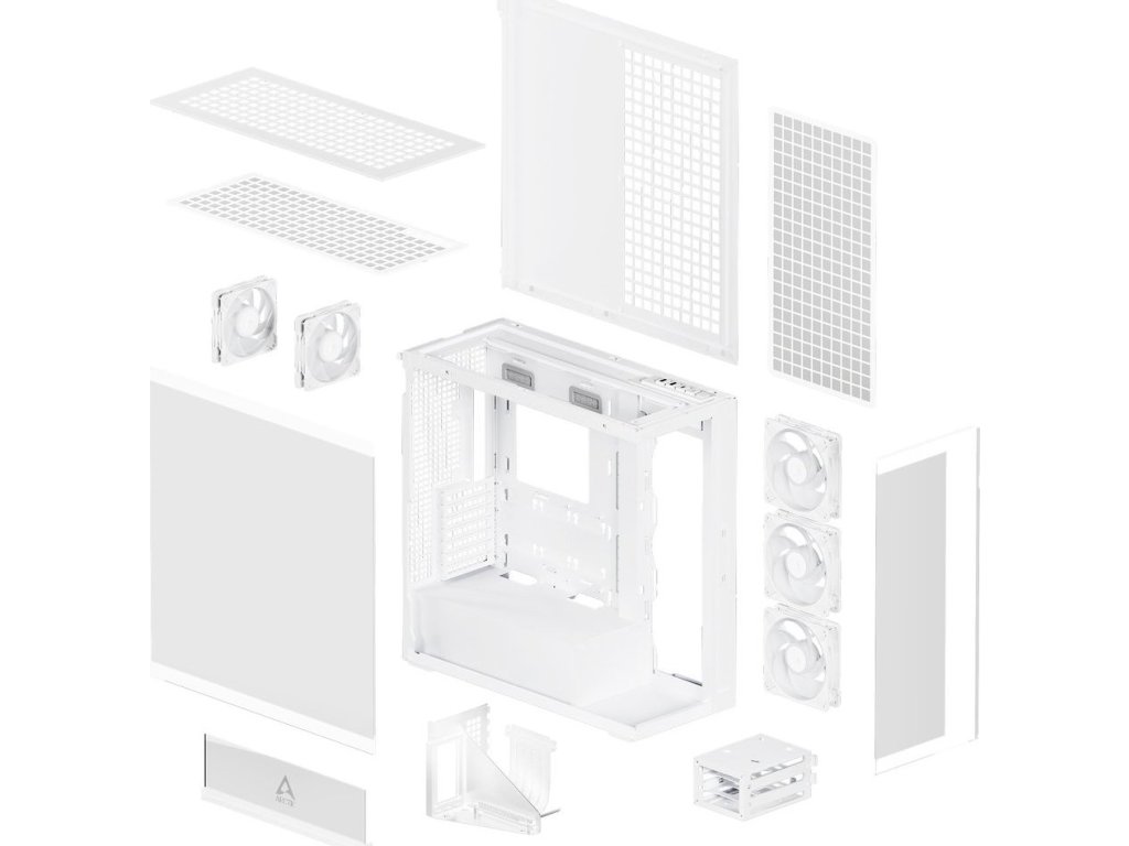 Elegantní bílá skříň ARCTIC Xtender VG kombinuje moderní design s čirým sklem a špičkovou funkčností. Díky prostornému interiéru pojme E-ATX základní desky až 285 mm široké a nabízí vynikající možnosti chlazení s podporou 360mm a 420mm radiátorů v horní i boční pozici.