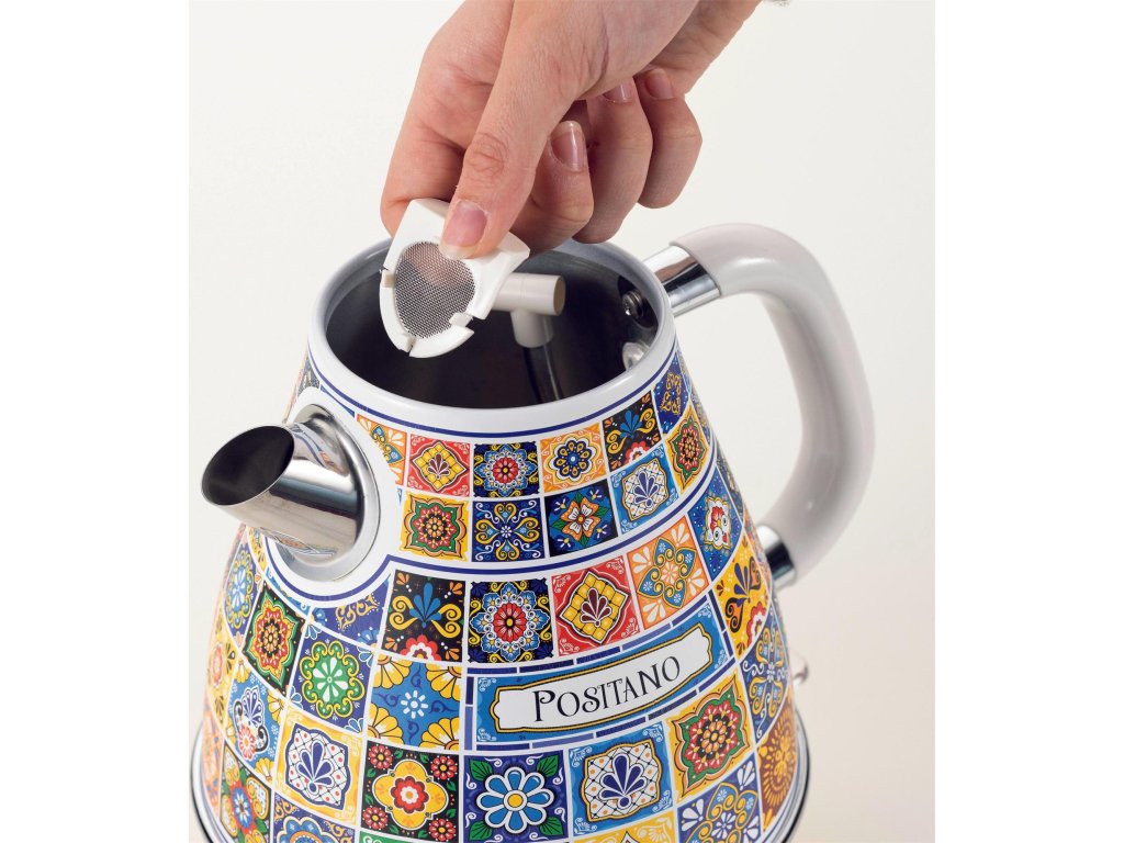 Vánek od moře, zapadající slunce, vůně citrusů. S rychlovarnou konvicí Ariete Positano se přenesete na dovolenou během jediného okamžiku. Za pár vteřin zvládne uvařit až 1,7 litru vody. Tato elektrická konvice z nerezové oceli s příkonem 2000 W zaujme elegantním designem a ergonomickou rukojetí s povrchem soft touch pro pohodlné nalévání. Praktická 360stupňová otočná základna umožňuje snadné umístění konvice na podstavec z jakéhokoliv úhlu. Součástí je také vyjímatelný odvápňovací filtr, který snadno opláchnete pod tekoucí vodou, abyste měli vždy čistou a chutnou vodu.Hlavní benefity designové konvice:
