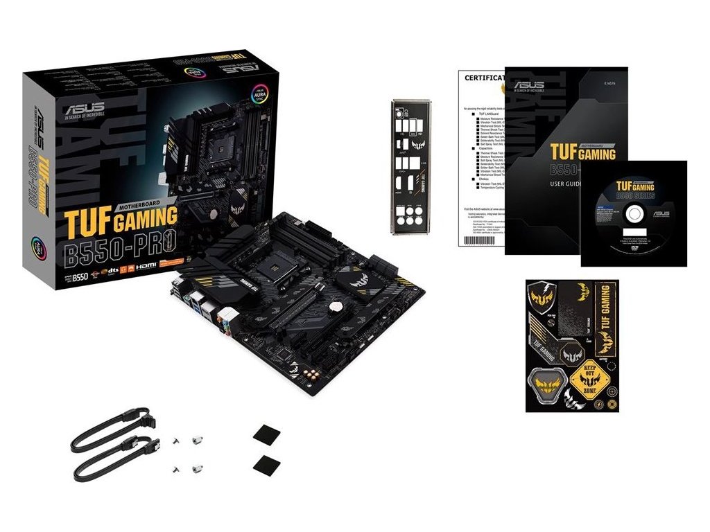 TUF Gaming B550-PRO vybírá základní prvky nejnovější platformy AMD a kombinuje je s herními funkcemi a prověřenou odolností. Tato základní deska, zkonstruovaná s vojenskými komponenty, vylepšeným napájecím řešením a rozsáhlou sadou možností chlazení, poskytuje skvělý výkon a neochvějnou herní stabilitu. Pokud stavíte na základní desce TUF Gaming, můžete také těžit z TUF Gaming Alliance, tedy ze spolupráce ASUS s důvěryhodnými průmyslovými partnery, která zajišťuje snadnější stavbu, nejlepší kompatibilitu a doplňkovou estetiku od komponent až po šasi.Chipset: AMD B550