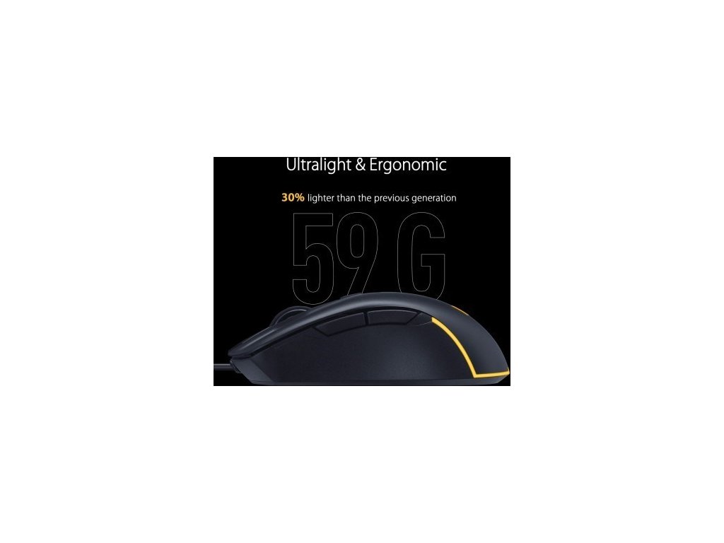 ASUS TUF Gaming M3 Gen II (P309)ASUS TUF Gaming M3 Gen II je ultralehká kabelová herní myš s hmotností pouhých 59 gramů, odolností vůči prachu a vodě garantovanou stupněm krytí IP56, antibakteriální ochranou ASUS Antibacterial Guard, snímačem s rozlišením 8000 dpi, spínači s životností 60 milionů kliknutí, teflonovými nožičkami a šesti programovatelnými tlačítky.