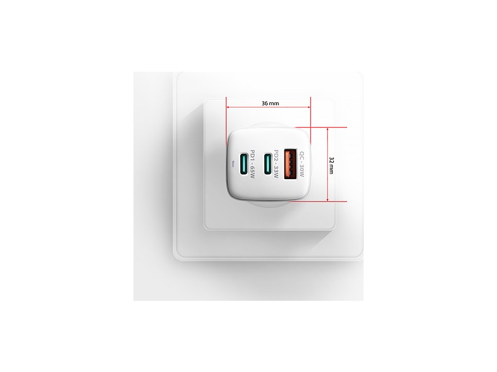 Tělo napájecího adaptéru má příjemný tvar a kompaktní velikost. Ve srovnání s klasickými nabíjecími adaptéry se stejnými parametry je velikost této nabíječky až o polovinu menší. Kombinace malých rozměrů, dosažených pomocí GaN technologie, a širokého rozsahu vstupního napětí, dělá z této nabíječky ideálního pomocníka na cesty. Provoz nabíječky signalizuje elegantní LED dioda.
