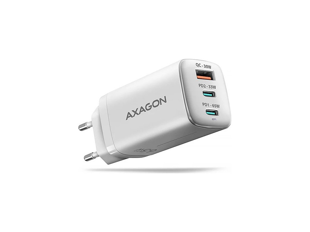 AXAGON ACU-DPQ65W, GaN nabíječka do sítě 65W, 3x port (USB-A + dual USB-C), PD3.0/QC4+/PPS/Apple