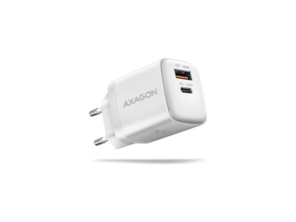 AXAGON ACU-PQ30W, Sil nabíječka do sítě 30W, 2x port (USB-A + USB-C), PD3.0/PPS/QC4+/SFC/AFC/Apple, bílá