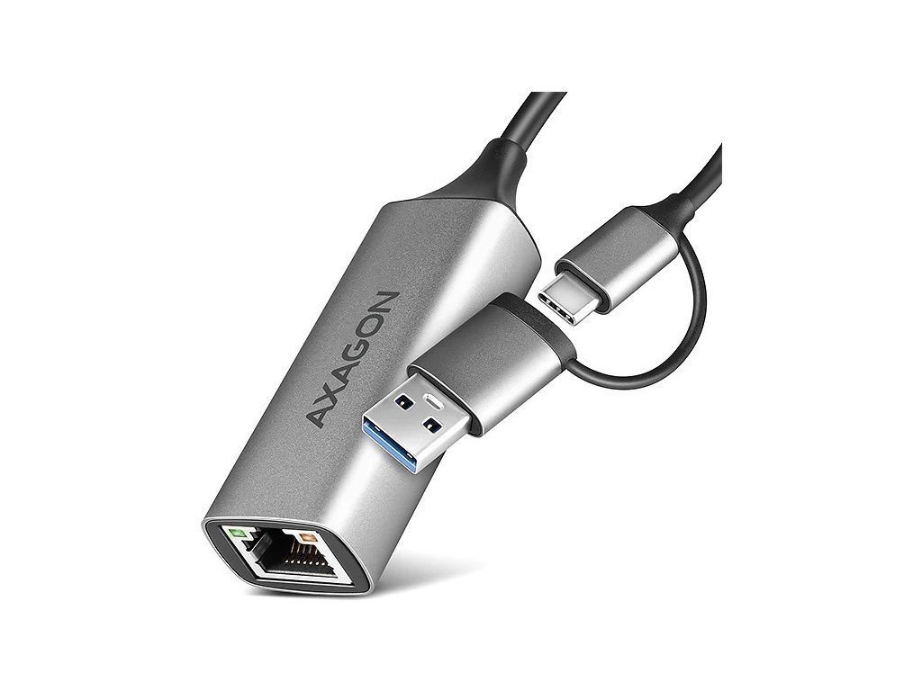 AXAGON ADE-TXCA, USB-C + USB-A 3.2 Gen 1 - Gigabit Ethernet síťová karta, Asix AX88179, auto instal