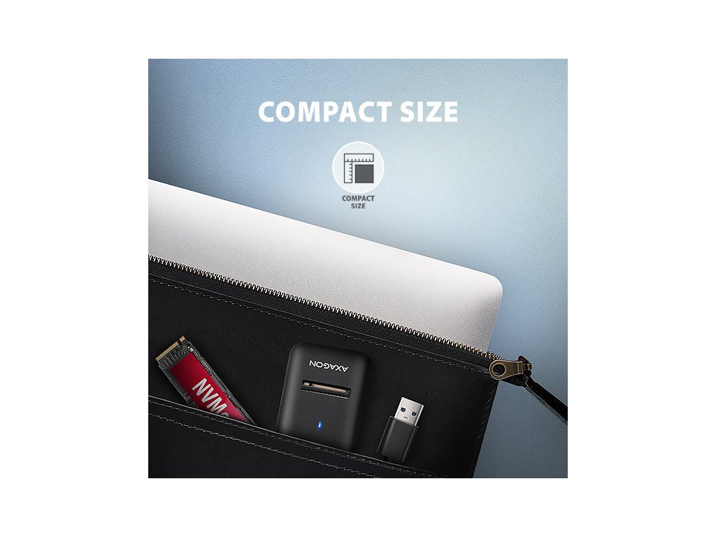Díky malým rozměrům je adaptér vždy pohotově po ruce. Je navržen tak, aby nebránil odvodu tepla z disku, což prodlužuje jeho životnost a zároveň zabraňuje zpomalování rychlosti disku, tzv. „Thermal Throttling“. Tuto redukci z USB-A na M.2 slot lze použít jak s počítači, tak i s notebooky.