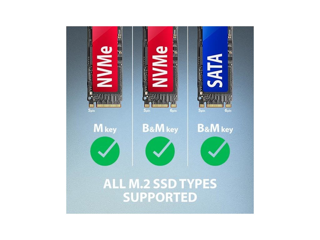 Unikátní vlastností, díky použitému čipsetu, je možnost použití jak M.2 NVMe tak i SATA disků. Nemusíte tak přemýšlet pro jaký typ M.2 disku je adapter určen, jednoduše přečte všechny typy. Další předností adaptéru je možnost velmi rychlého vložení disku do slotu adaptéru. Snadná je i výměna disků. Uvedené vlastnosti dělají z adaptéru šikovný a užitečný nástroj pro častou práci s různými druhy disků. Jedná se tak o ideálního pomocníka pro testování disků, přenos, zálohování a obnovu dat apod.