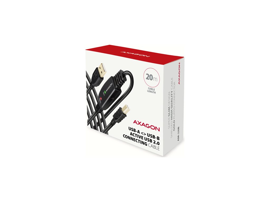 AXAGON ADR-220B, USB 2.0 A-M -> B-M aktivní propojovací / repeater kabel, 20m