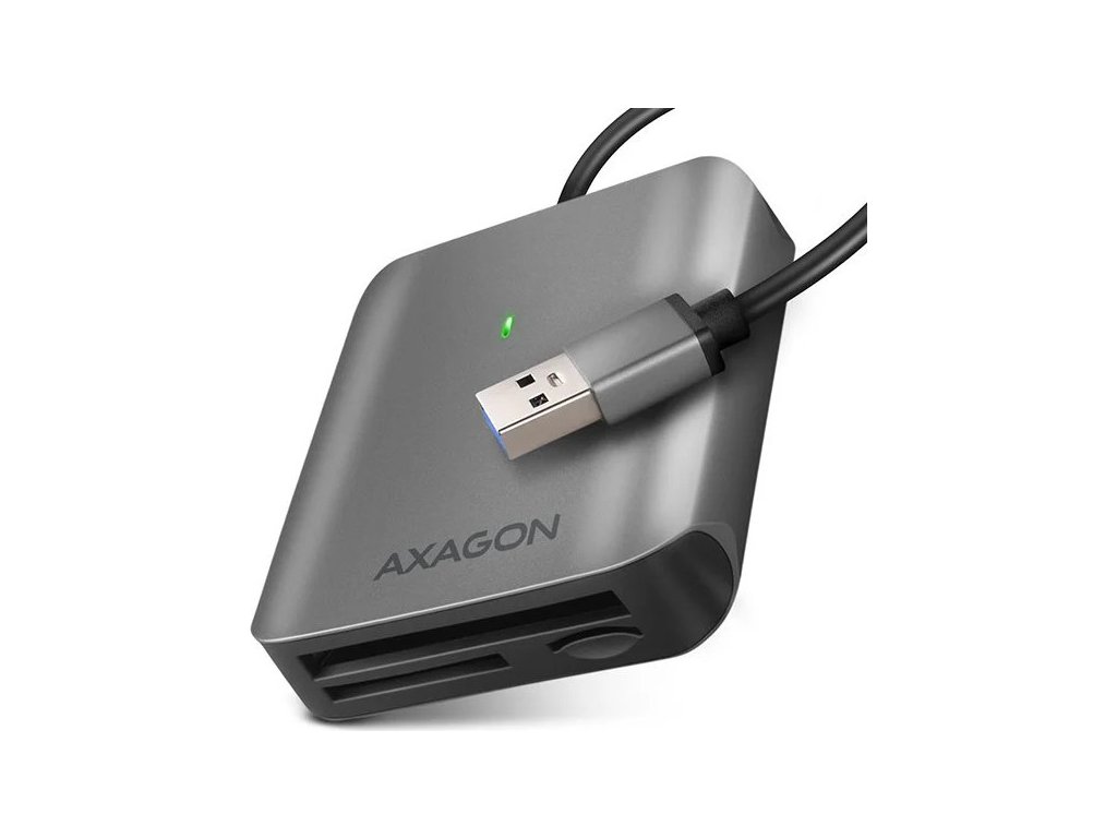 Hliníková 3in1 čtečka paměťových karet AXAGON CRE-S3 SUPERSPEED s USB 3.2 Gen 1 rozhraním podporuje všechny současné verze SD a microSD karet včetně SDXC a microSDXC s kapacitou až 2TB. Dále podporuje CF karty o kapacitě až 128PT.Díky USB 3.2 Gen 1 (dříve USB 3.0) rozhraní dosahuje čtečka výrazně vyšších přenosových rychlostí oproti čtečkám s USB 2.0 rozhraním. UHS-II karty dosahují rychlosti až 156 MB/s (full-duplex) resp. 312 MB/s (half-duplex), podpora starších USH-I karet (max rychlost 104 MB/s) je samozřejmostí.