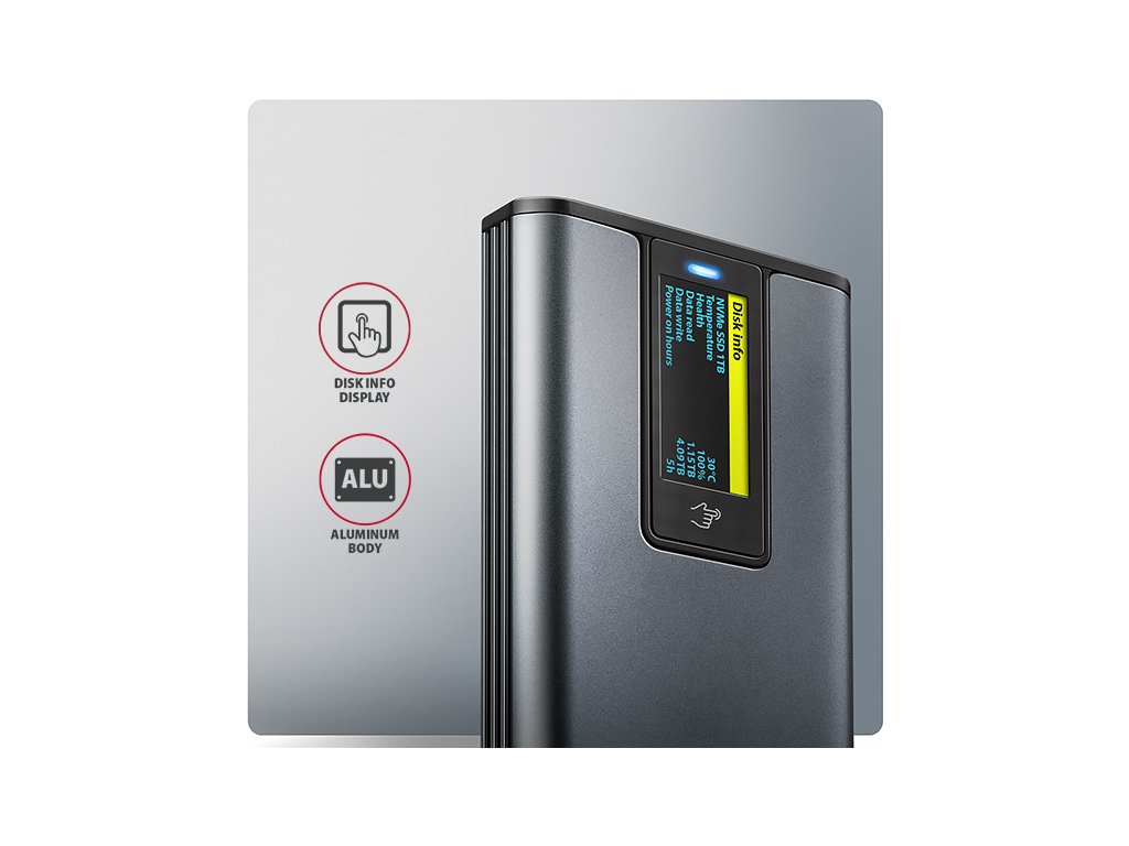 • Vyšší povrchová teplota boxu není závadou - díky hliníkovému tělu je teplo generované provozem disku lépe odváděno a předáváno do okolí.