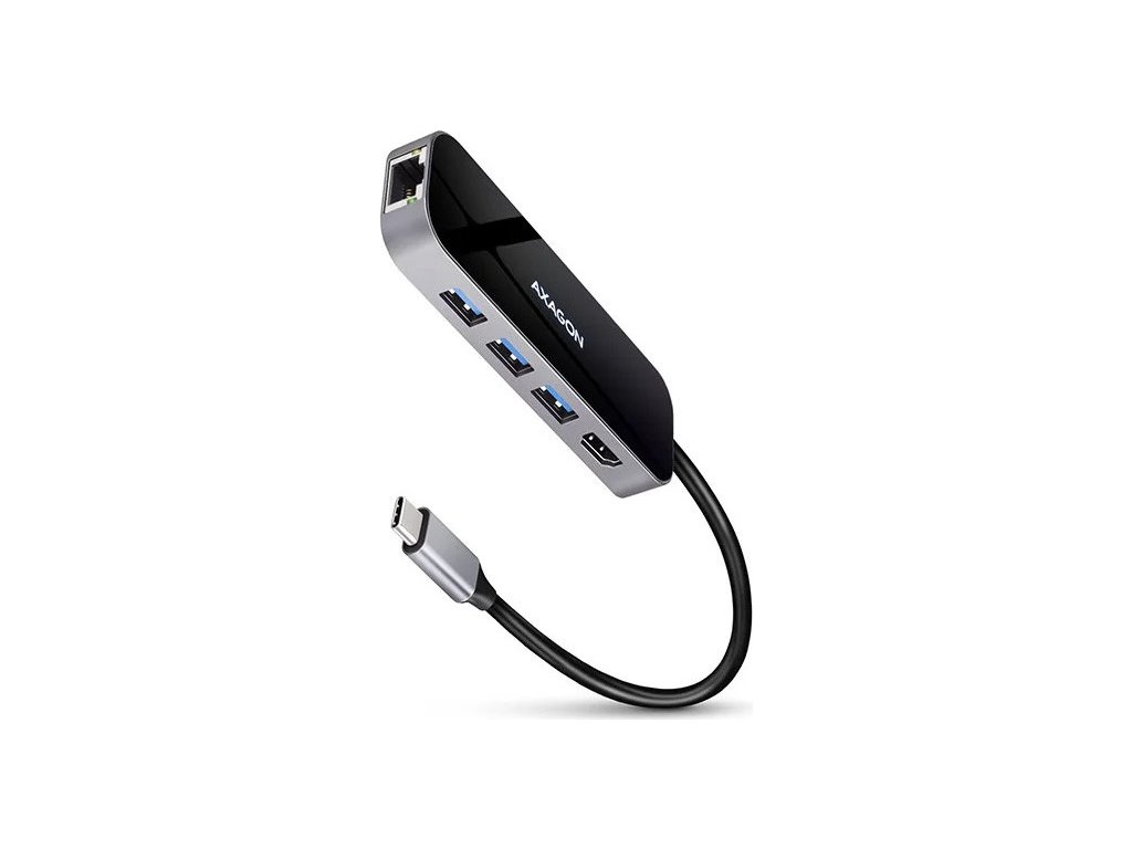 Multiportový USB-C 3.2 Gen 1 hub AXAGON HMC-6GL rozšíří Váš notebook, počítač nebo telefon o šest portů. Přes oboustranný USB-C konektor snadno a rychle připojíte k počítači až tři USB zařízení, Gigabitovou ethernet síť a HDMI zobrazovač současně. Zároveň získáte možnost napájení notebooku pomocí technologie Power Delivery. USB-C hub vám tak poskytne jednoduchou a skladnou dokovací stanici 6v1 k notebooku jako je například MacBook Pro.USB rozbočovač nabízí tři USB výstupy se standardními USB-A konektory. Hub zvládne trvalé připojení několika externích disků současně. Díky rychlému USB 3.2 Gen 1 rozhraní je přenosová rychlost hubu až 5Gb/s. Hub dále umožní nabíjení telefonů a tabletů proudem až 1,5A/5V, z hubu tak snadno nabijete např. Android smartphone, Apple iPhone, Apple iPad apod.