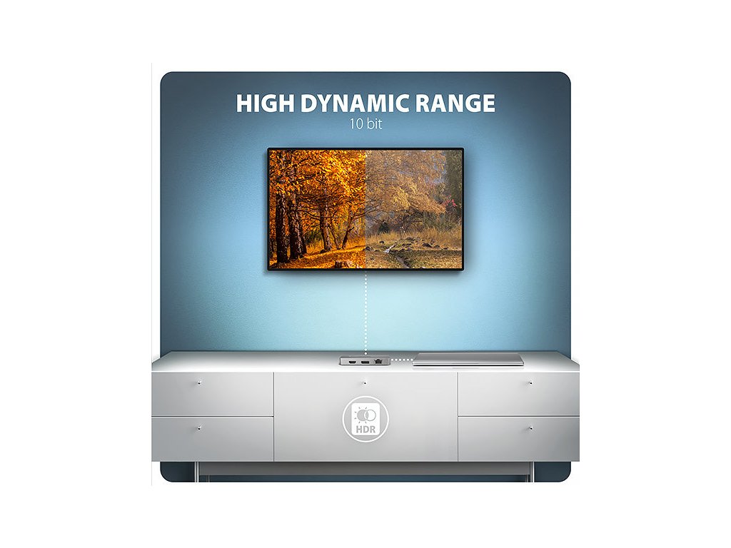• Podpora HDR (High Dynamic Range, 10 bit support) - realistická reprodukce světlých a tmavých detailů.