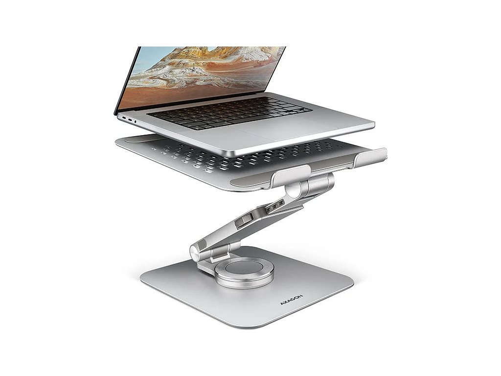 AXAGON STND-LR, hliníkový stojan pro notebooky 10"-17.3" s nastavitelnou výškou, úhlem a 360° rotací, šedý