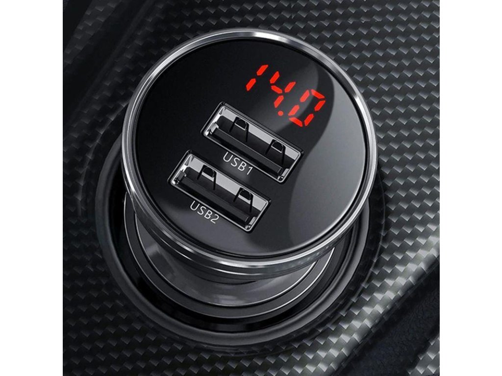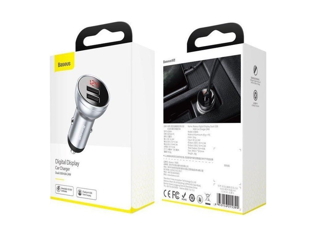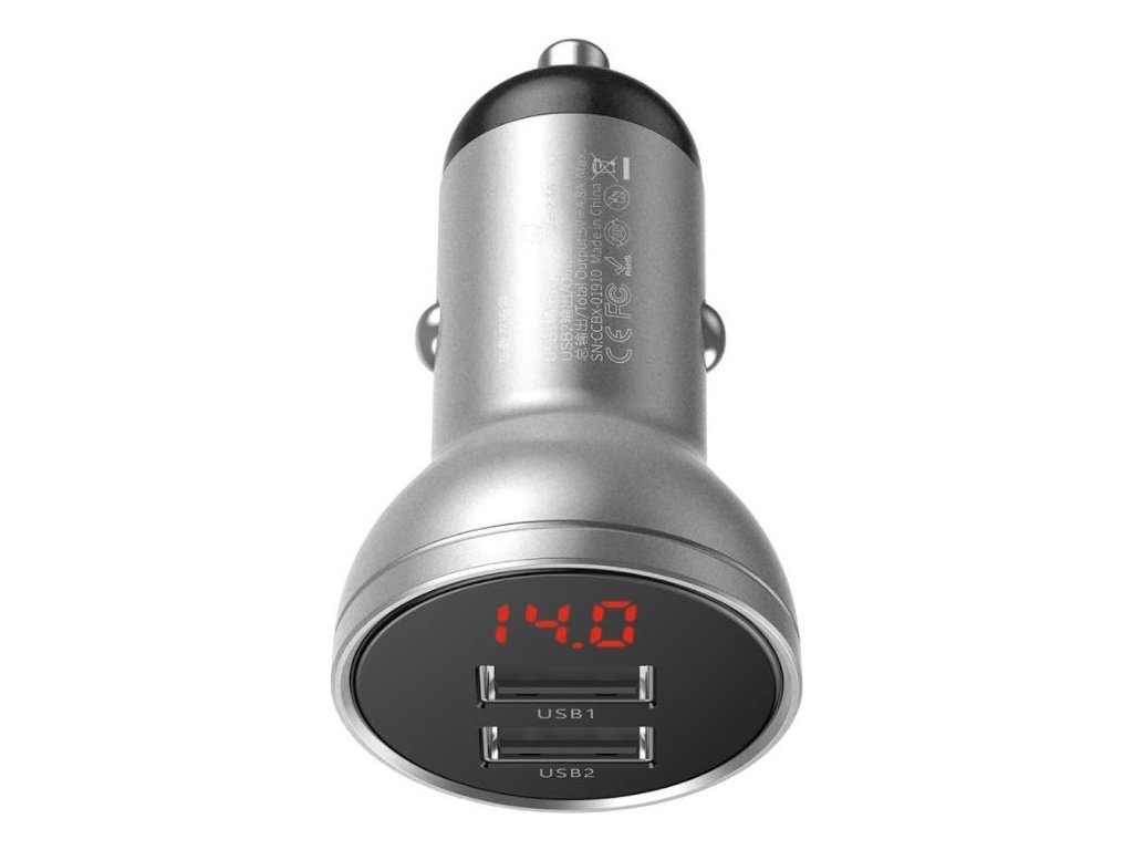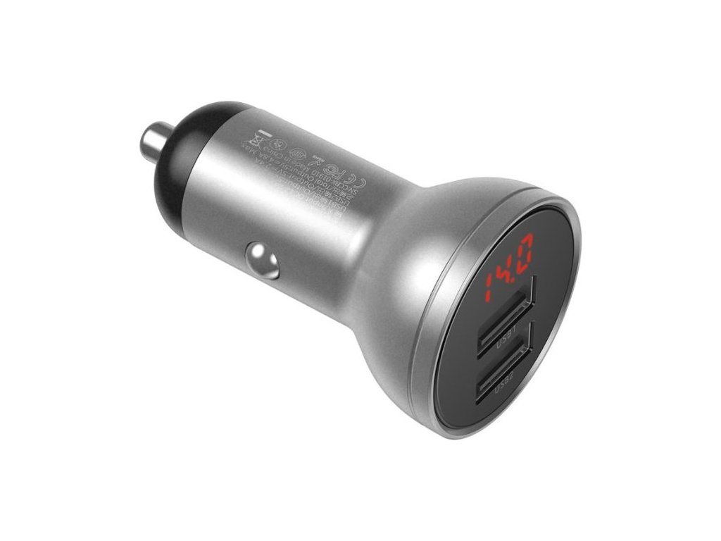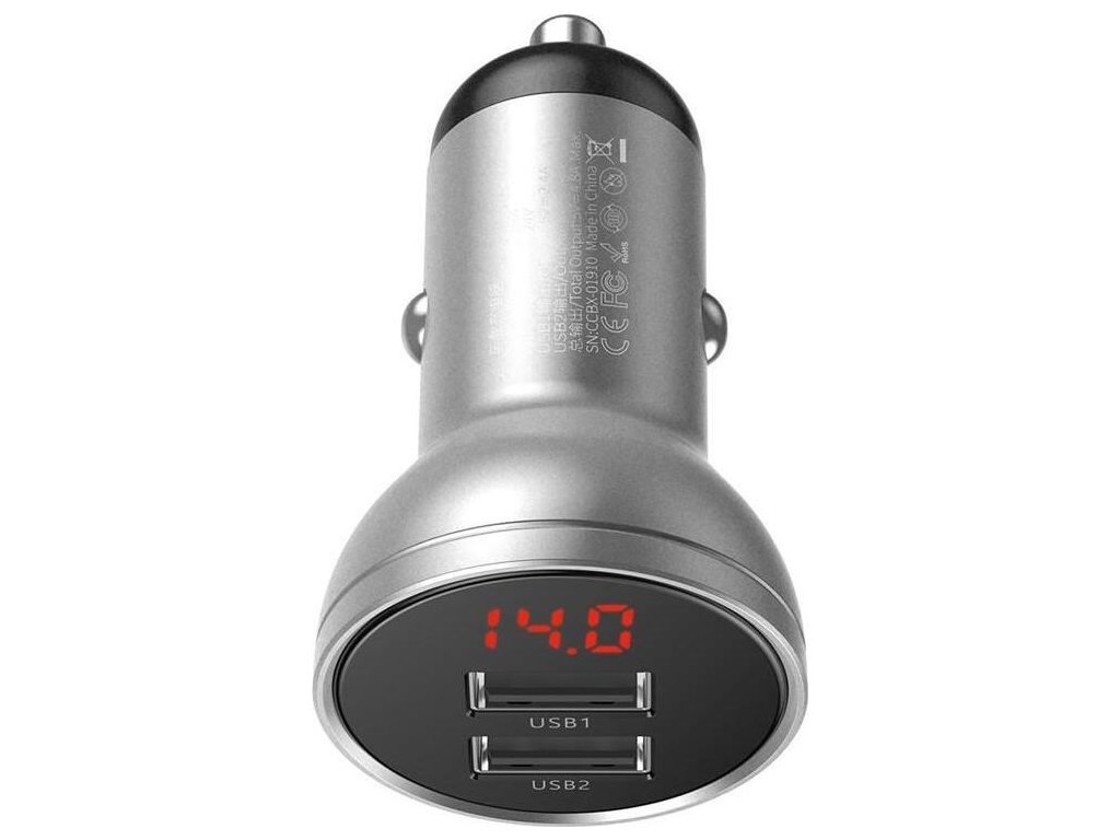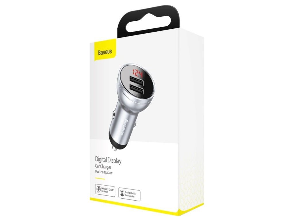Baseus CCBX-0S Digital Display nabíječka do auta 2xUSB 24W stříbrná