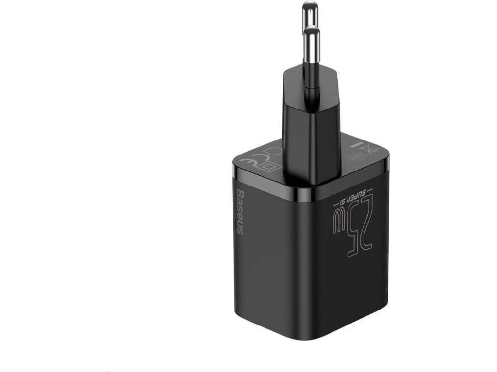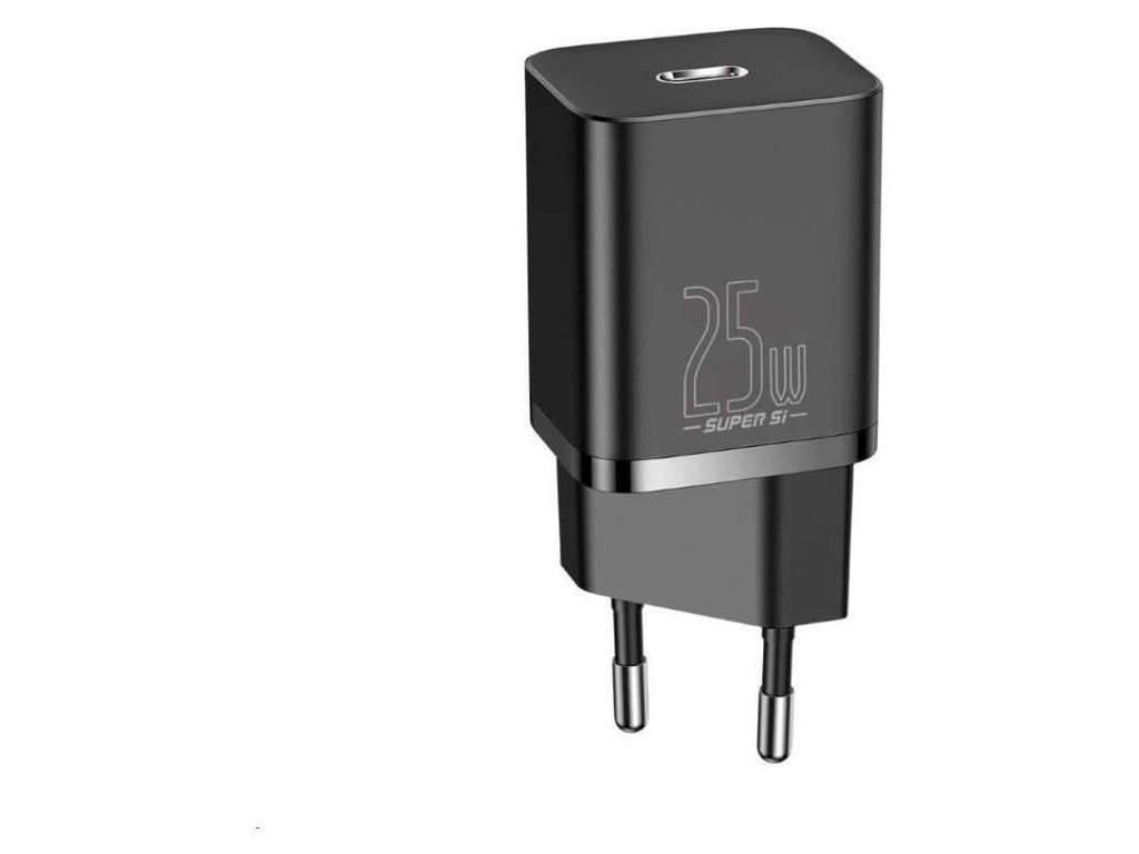 Baseus Super Si rychlonabíječka 1C 25W EU + kabel USB-C/USB-C 3A 1m černá