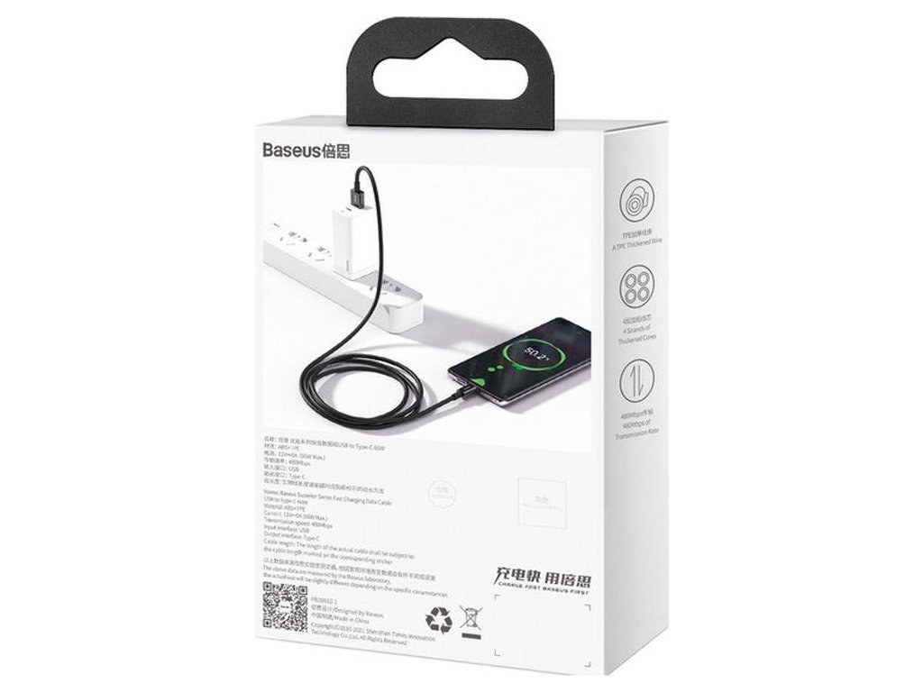 Baseus Superior Series rychlonabíjecí kabel USB/USB-C 66W 1m černá