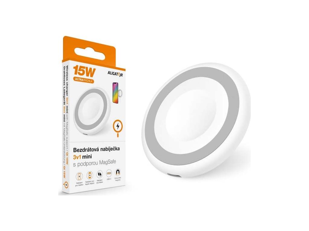Bezdrátová nabíječka ALIGATOR 3v1 mini 15W, bílá