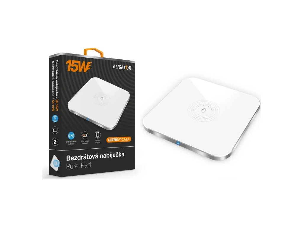 Technologie Qi používá k přenosu elektrické energie elektromagnetické pole s adaptivním řízením výkonu. Díky tomu je možné bezpečně a snadno nabíjet telefon nebo sluchátka. Aligator Pure-Pad umožňuje bezdrátově nabíjet moderní telefony výkonem až 15W, což je 6x více než u základní USB nabíječky!