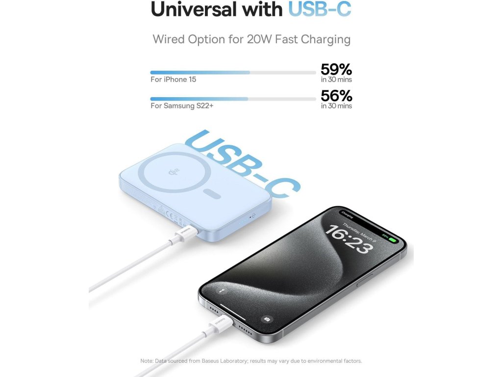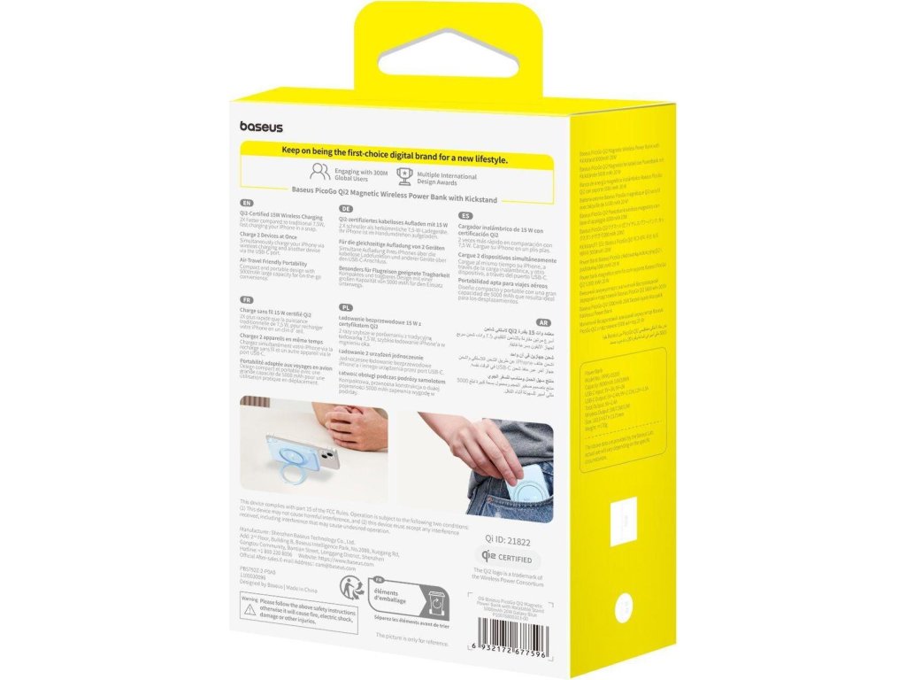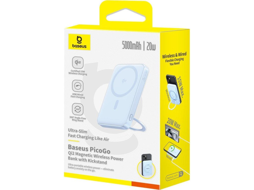 Bezdrátová powerbanka Baseus PicoGo Qi2 5000mAh, 20W modrá