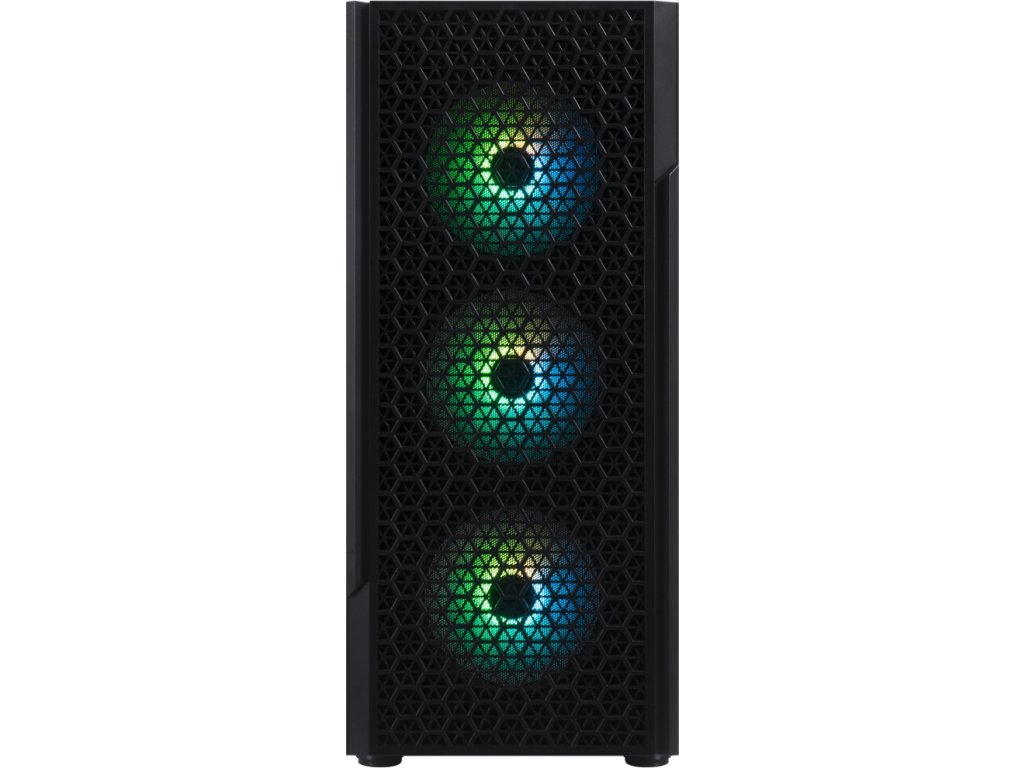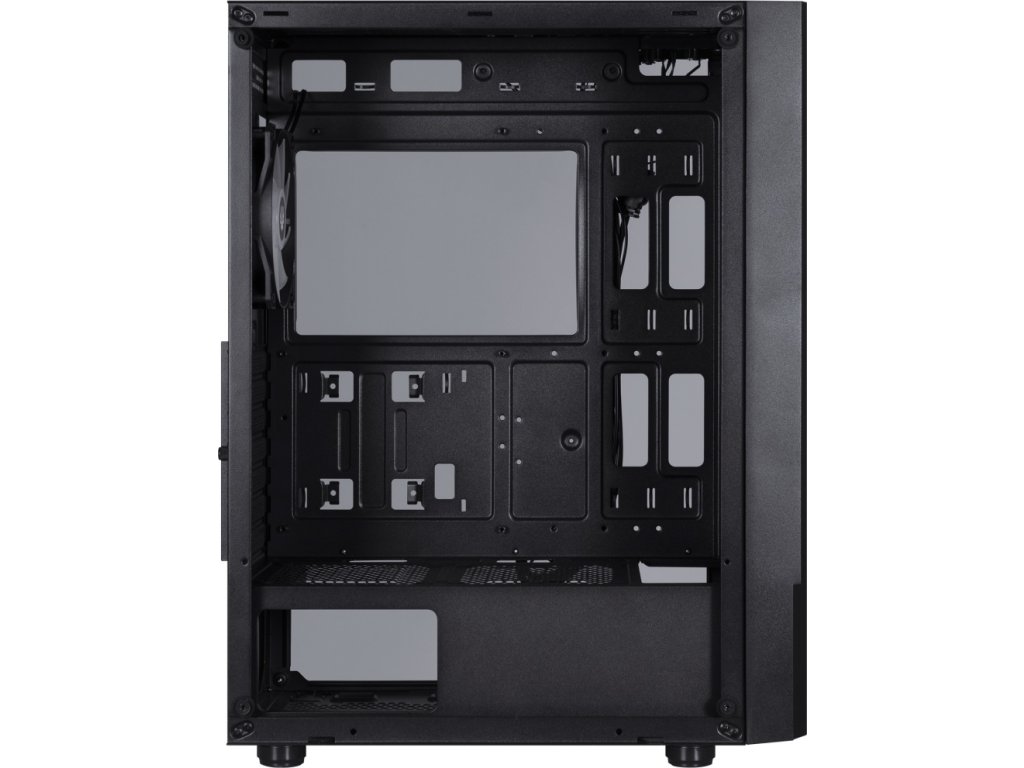 Herní počítačová skříň nabízí stylovou prosklenou bočnici a poloprůhledný přední panel. Skříň je osazena čtyřmi ventilátory o velikosti 120 mm s FRGB podsvícením. Potěší také možnost rozšíření o další 2 ventilátory. Důmyslné řešení umožňuje pohodlné umístění až 360 mm dlouhého výměníku vodního chlazení na přední straně. Ve skříni je dostatek prostoru pro chladič CPU do výšky až 165 mm a grafickou kartu o délce až 330 mm. Na horním panelu se nachází dva USB 2.0 porty, jeden port USB 3.0, sluchátkový výstup a vstup pro mikrofon. Samozřejmostí jsou také prachové filtry. Skříň je dodávána bez zdroje.