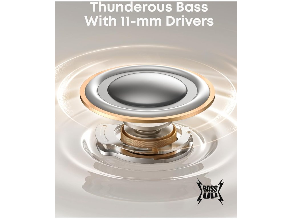 Výkonné 11mm kompozitní reproduktory poskytují pohlcující zvuk, který je vylepšen technologií BassUp pro intenzivní basy a silný dopad.