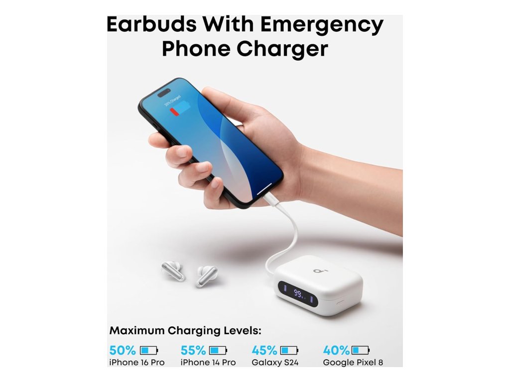 Na jedno nabití vydrží poslouchat až 12 hodin, pouzdro tuto dobu prodlouží na 192 hodin. Desetiminutové rychlé nabíjení vám zajistí dalších 5 hodin poslechu.