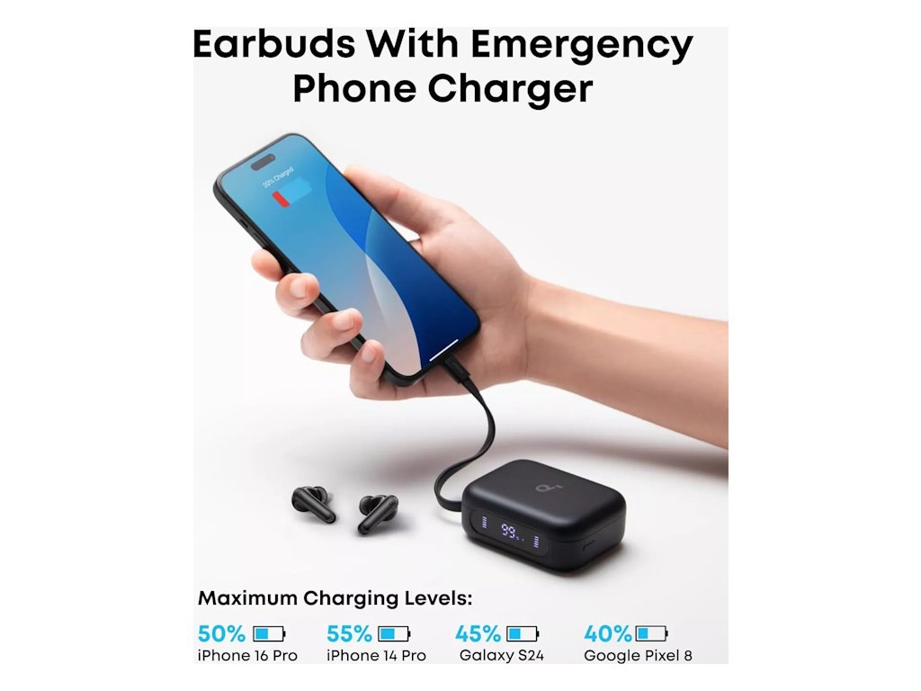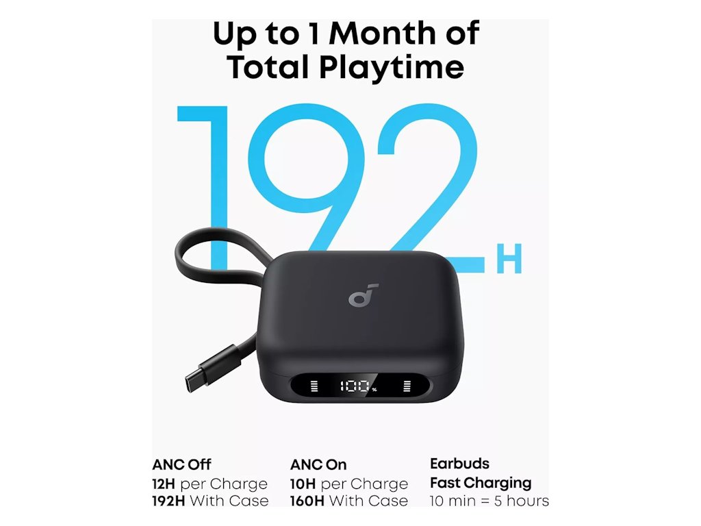 Na jedno nabití vydrží poslouchat až 12 hodin, pouzdro tuto dobu prodlouží na 192 hodin. Desetiminutové rychlé nabíjení vám zajistí dalších 5 hodin poslechu.