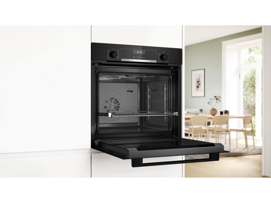 Bosch HBG537EB4Vestavná pečicí trouba Bosch HBG537EB4 s funkcí 3D horký vzduch rovnoměrně rozprostírá vzduch po celé troubě a péct můžete až na 3 úrovních najednou. Pokud vás nenapadá žádný recept, využijte 10 přednastavených programů AutoPilot, které dohlédnou na přípravu. Pro zdravé mlsání zkuste připravit domácí zeleninové brambůrky, které díky funkci Air Fry budou dokonale propečené a křupavé. Teleskopický výsuv zaručí bezpečnou kontrolu jídla, aniž by se vám plech převrhl. S čištěním si trouba radí již v průběhu pečení díky speciálnímu povrchu zadní stěny, který pohlcuje tuky. Systém SoftMove tlumí otvírání a zavírání trouby, které bude šetrné k vašemu spotřebiči.