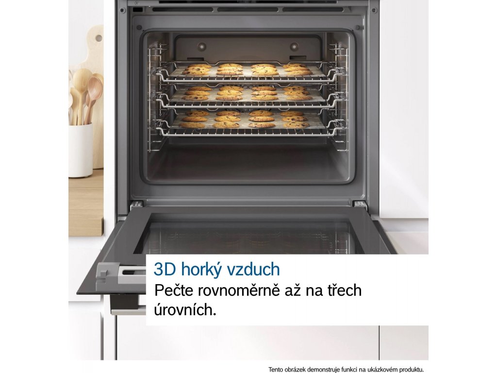 V troubě Bosch proudí 3D horký vzduch, který umožní péct různé druhy pokrmů až na třech úrovních najednou. Teplo se rozpíná rovnoměrně a rychle po celém vnitřním prostoru trouby. Vy tak můžete péct najednou pizzu, ovocný koláč a vepřovou panenku. Chutě se nebudou mísit dohromady.
