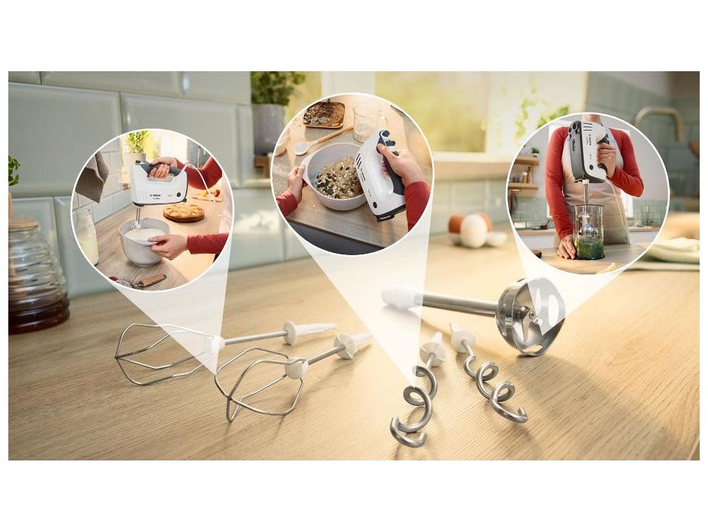 | Příslušenství: | sekáček (chopper), šlehací metly, hnětací metly, mixovací/šlehací nádoba, tyčový nástavec |