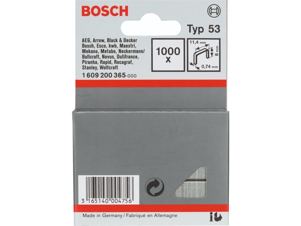 BOSCH Sponky do sponkovačky z tenkého drátu, typ 53 (1.609.200.365)