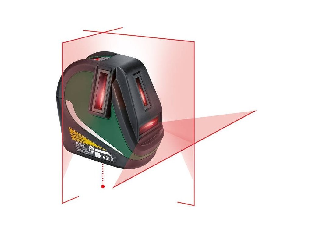 Všestrannost: Laser promítá červenou křížovou čáru s úhlem rozevření 120°. Díky funkci kolmého paprsku navíc usnadní přesné přenesení bodu z podlahy na strop.