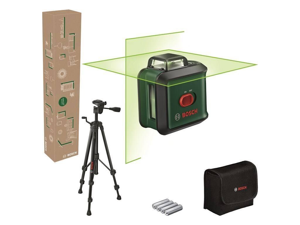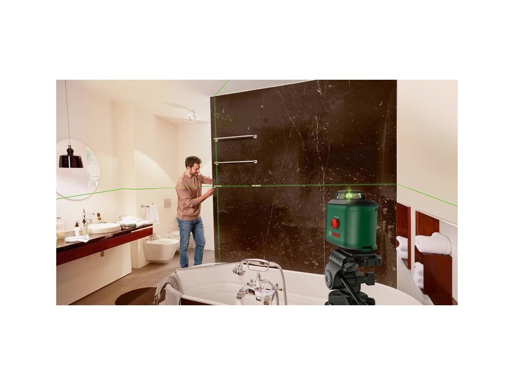 Bosch UniversalLevel 360 set je křížový laser se zeleným paprskem, který zajišťuje dokonalou rovinu v rozsahu 360°. Nabízí pracovní dosah až 24 metrů s přesností ± 0,4 mm/m. Disponuje automatickou samonivelací (do ± 4°) a 1/4" závitem pro stativ, který je součástí balení. Pohodlné ovládání zajišťují pogumované strany a tlačítka.Specifikace: