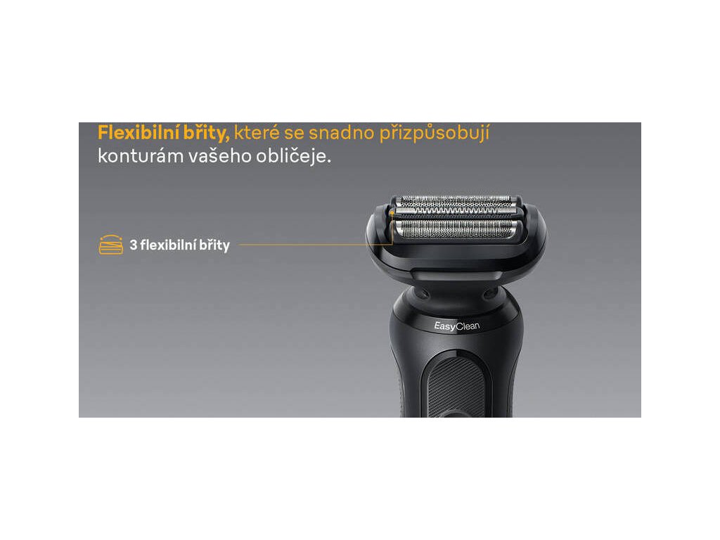 3 flexibilní břity se snadno přizpůsobují konturám obličeje pro hladké a rychlé oholení
